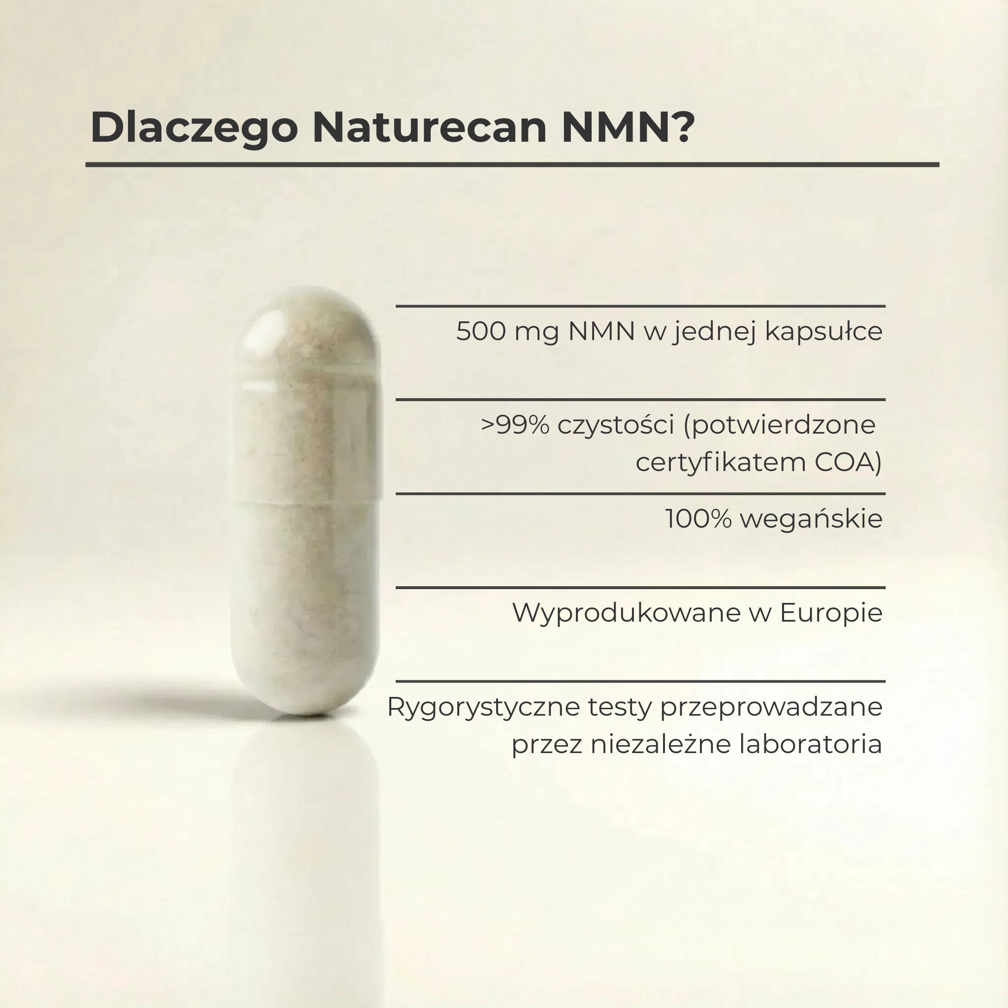 Łącznie efekty te sprawiają, że NMN jest silnym suplementem do codziennego stosowania dla osób, które chcą zachować energię, koncentrację i witalność na każdym etapie życia.